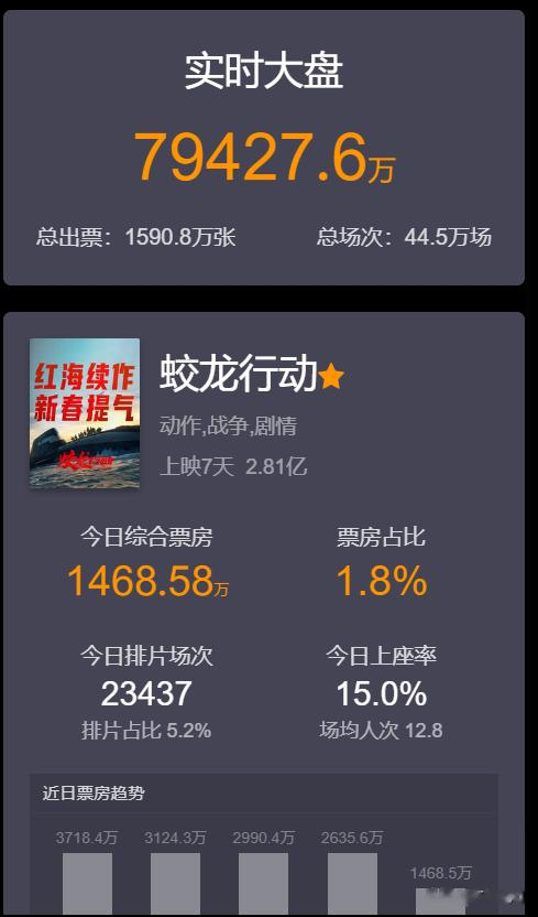 在竞争激烈的春节档,《蛟龙行动》的预售票房居然和动画片《熊出没》差不多,跟其他热门影片比起来,那差距简直就是一个天上一个地下。这数据就像是一记响亮的耳光,直接打在了片方的脸上,说明观众对这部电影的期待值并不高。这可能是因为前期宣传不给力,也可能是电影本身的质量问题,让观众望而却步。
